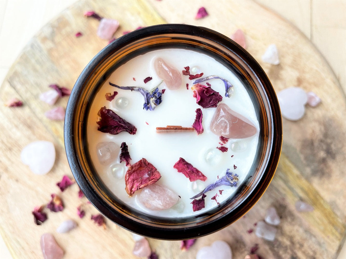 La bougie Amour + compassion ( SELF LOVE ) vous permettra de créer une atmosphère de douceur chaleureuse. Le quartz rose est reconnu en lithothérapie pour la douceur qu'il apporte. Il augmente la confiance en favorisant l'amour de soi. C'est une pierre très positive qui permet de créer une ambiance rassurante et d'aider à la communication.