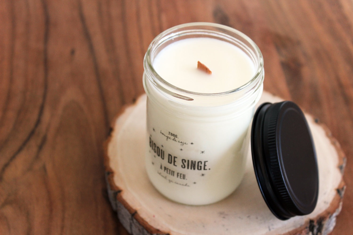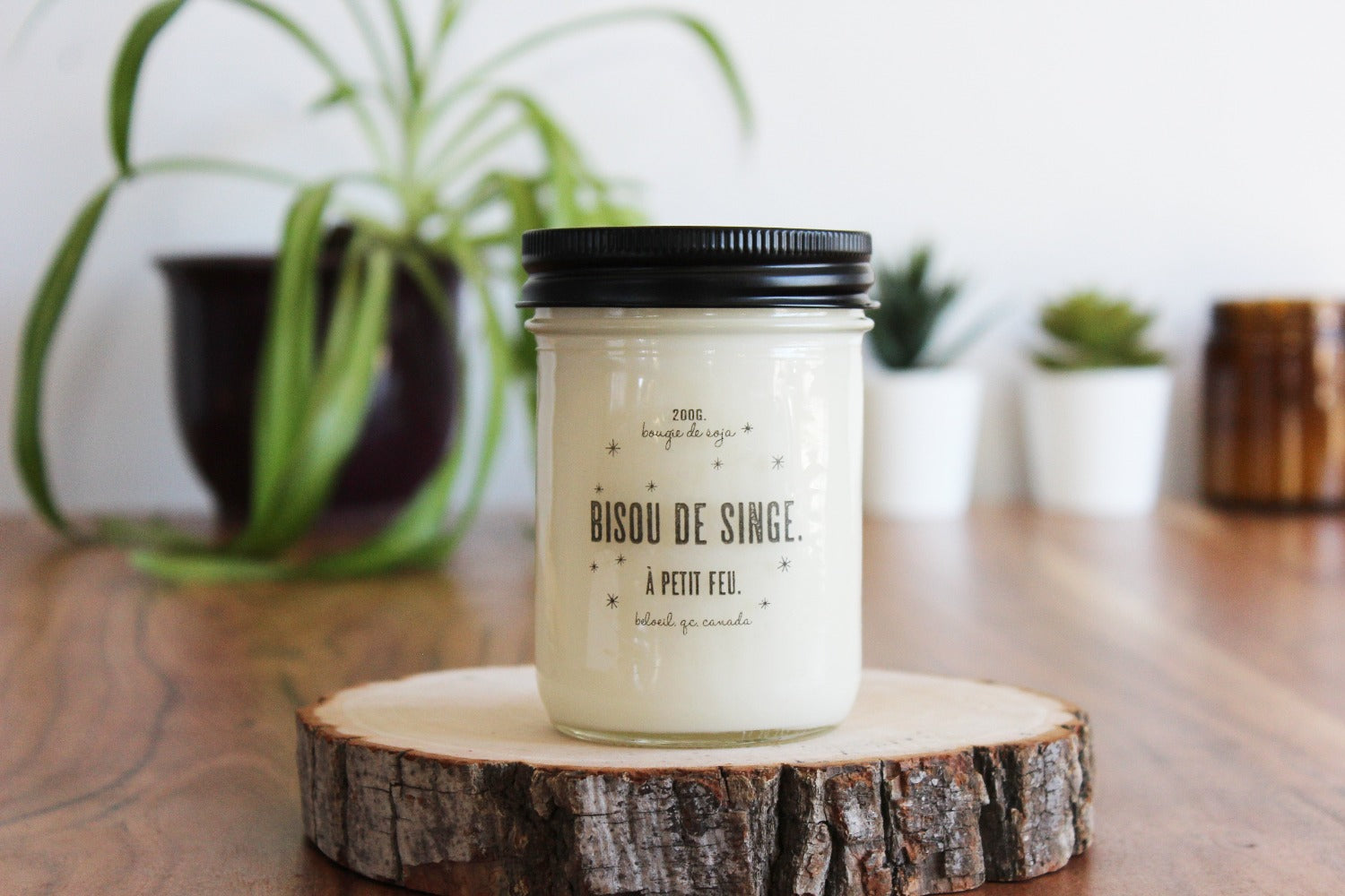 Cette chandelle artisanale est fait avec de la cire de soya sans émanations toxiques. Sans danger pour l'environnement, cette cire provient d'une source renouvelable et durable. Les chandelles fabriquées avec de la cire de soya brûlent jusqu'à 50% plus longtemps que les chandelles à base de cire de paraffine.