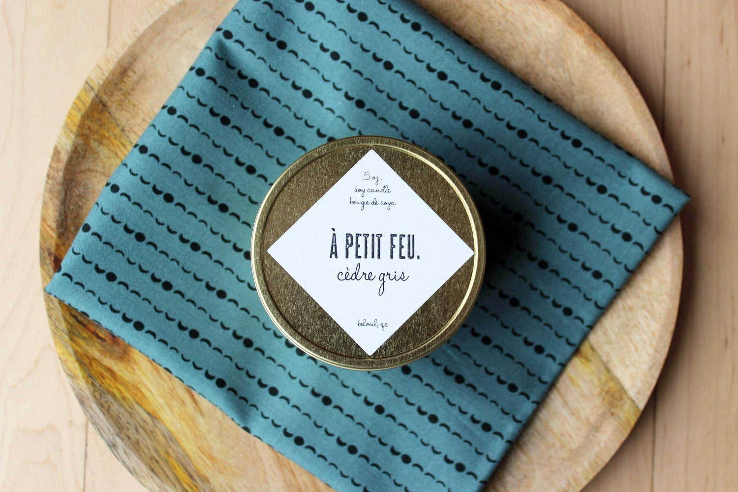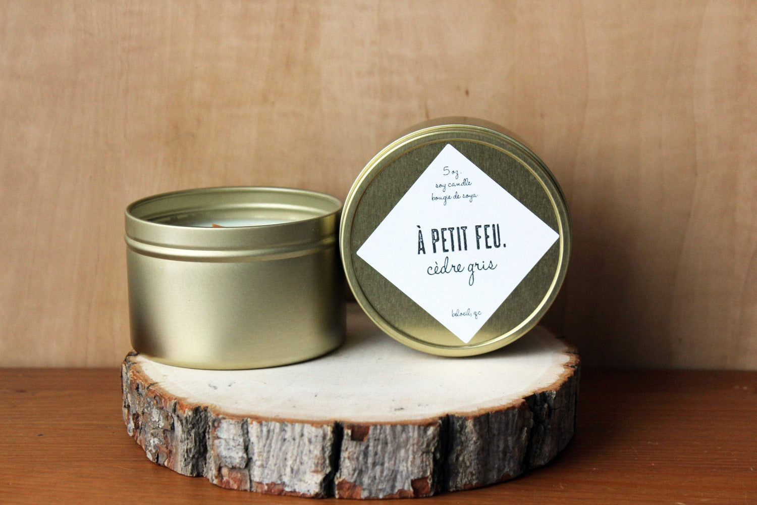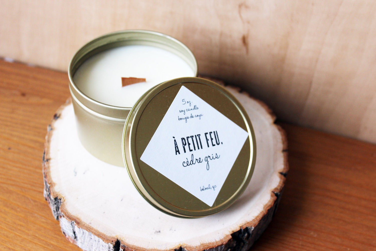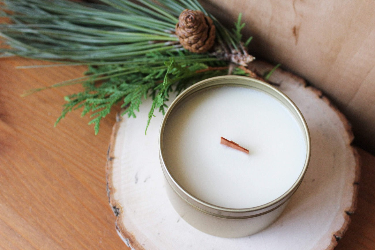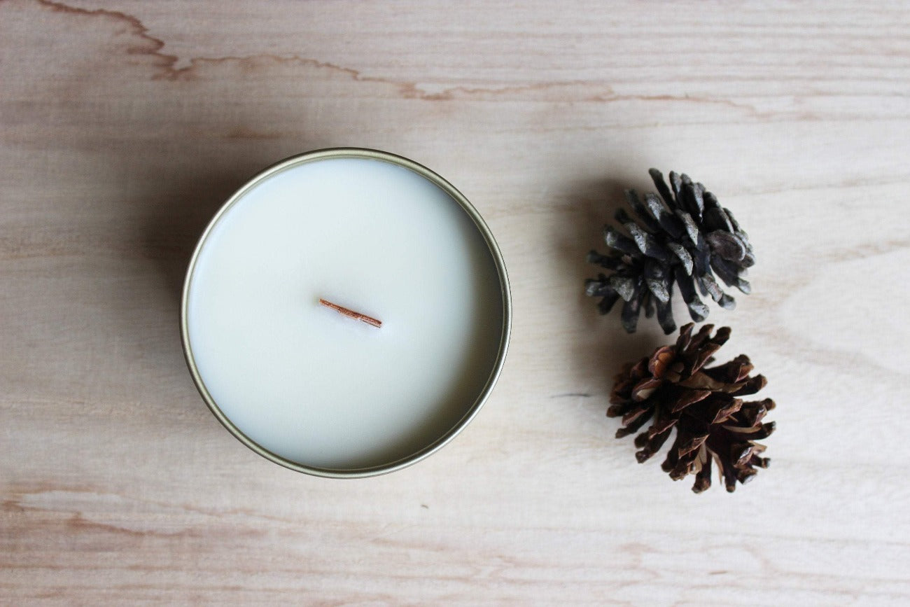 ingrédients: Bougie 5 oz. fait de cire de soja biologique sans additifs, mèche de bois, fragrances.