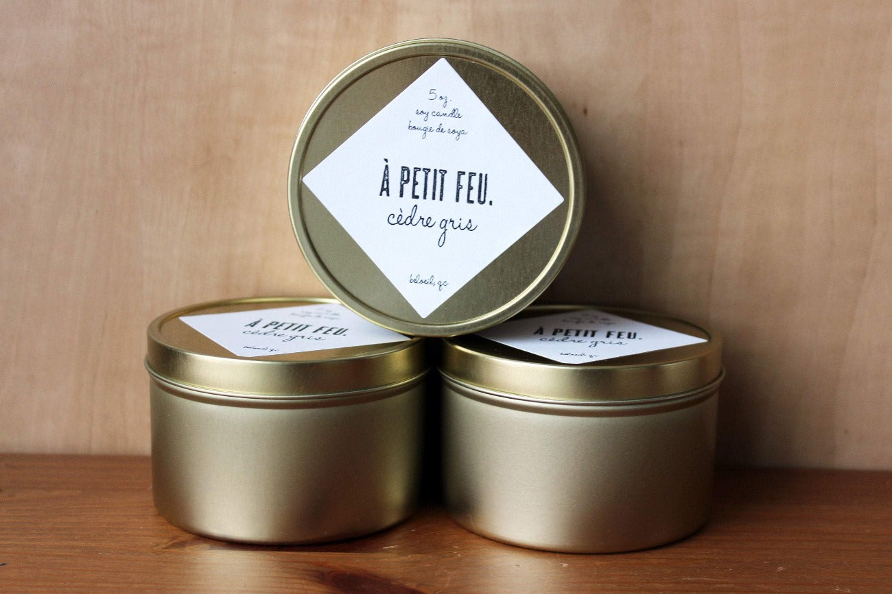 Bougie de soja - contenant zen étain or -