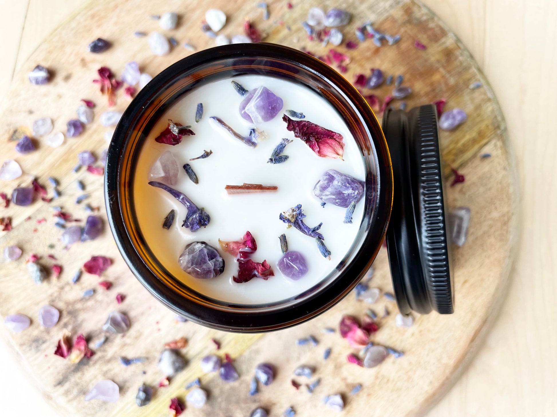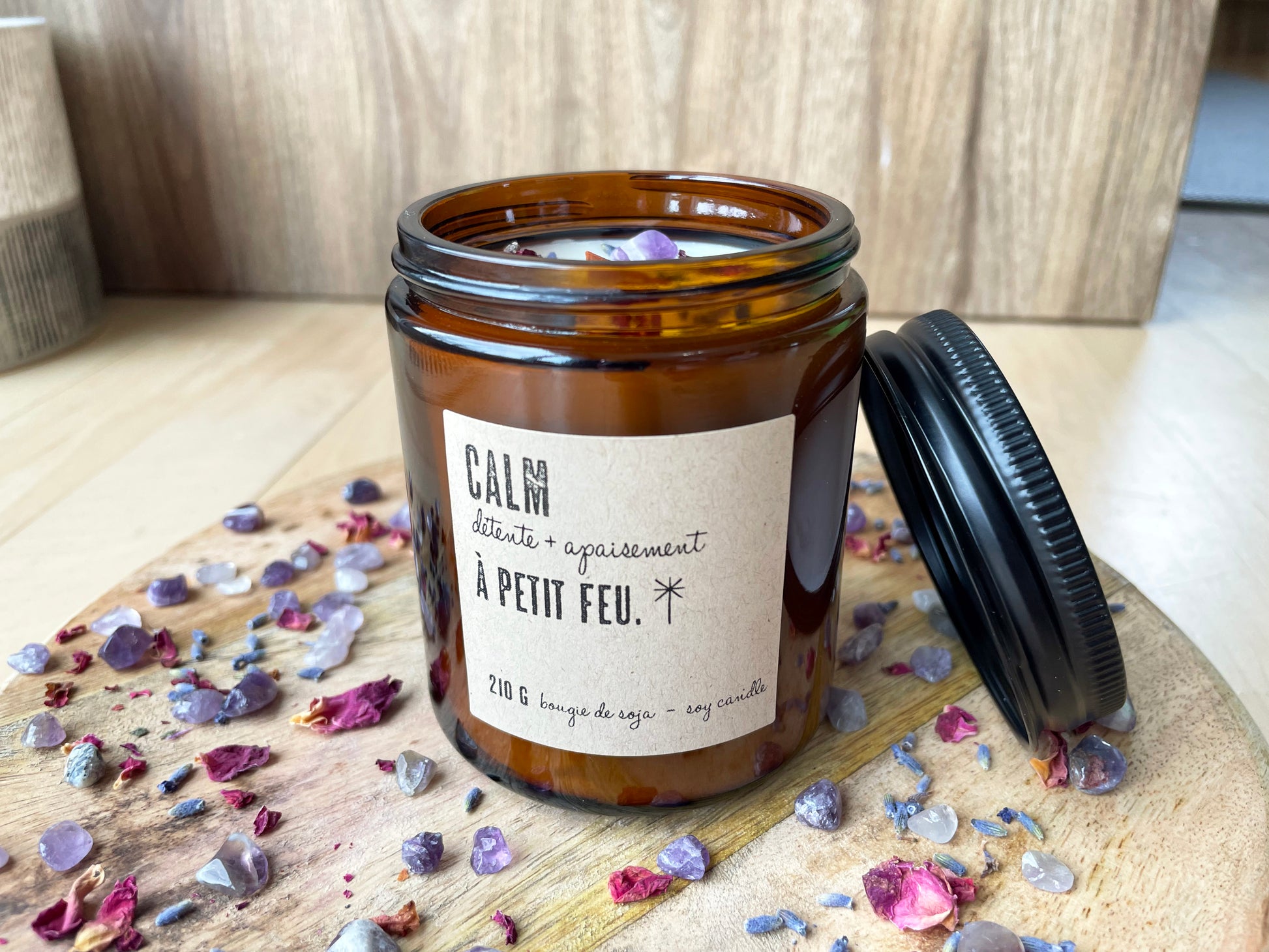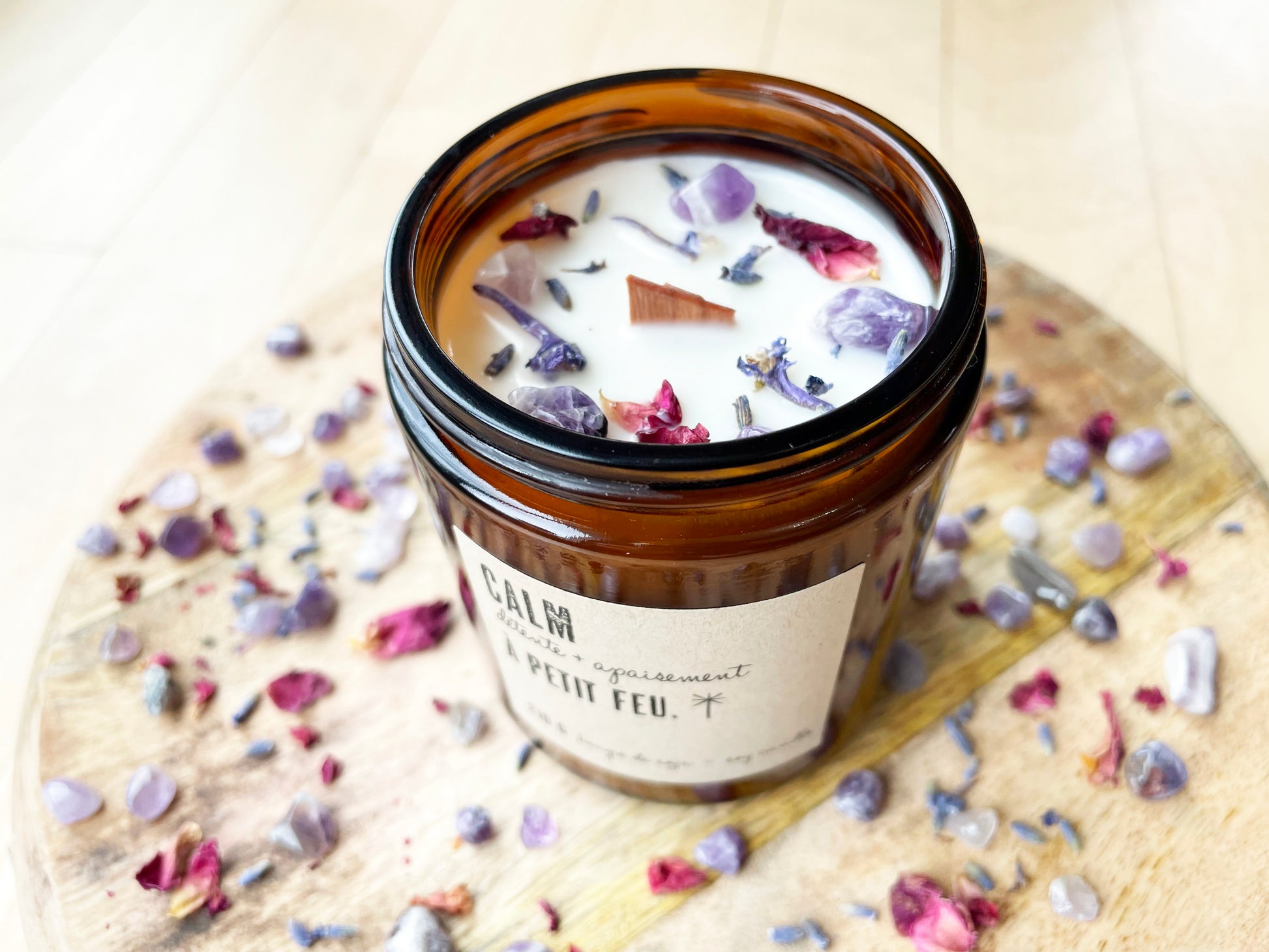 Une bougie pour vos moments de calme. La chandelle CALM, Détente & Apaisement vous permettra de créer une atmosphère de douceur et de relaxation. L'améthyste est une pierre dont les propriétés vont aider à apaiser les angoisses et les colères tout en favorisant le calme du mental.