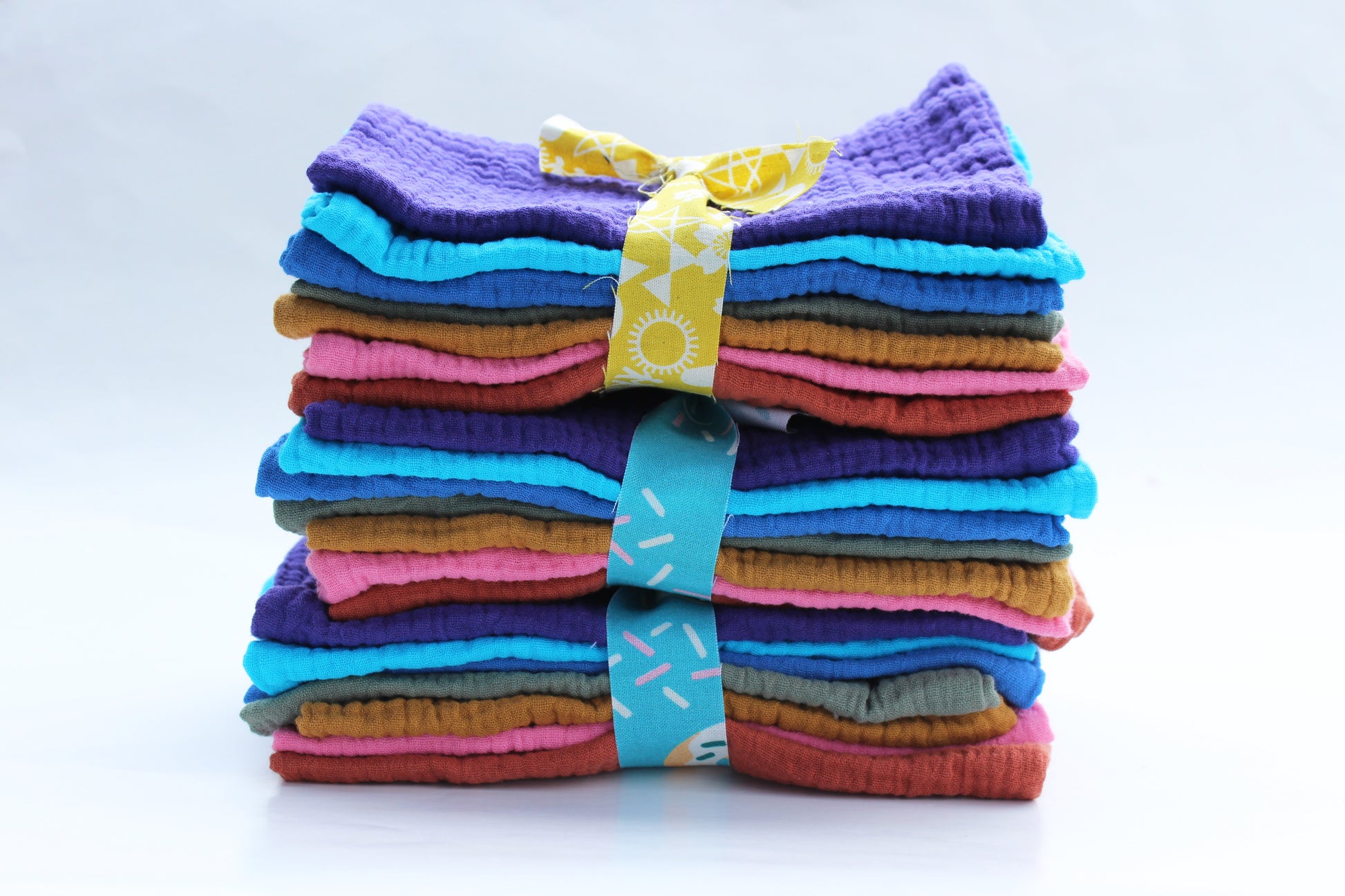 Voici un joli ensemble de débarbouillettes faites de double gaze de coton biologique. Vous pouvez les utiliser pour laver votre visage, faire votre toilette mais aussi pour les petits dégâts du quotidiens.