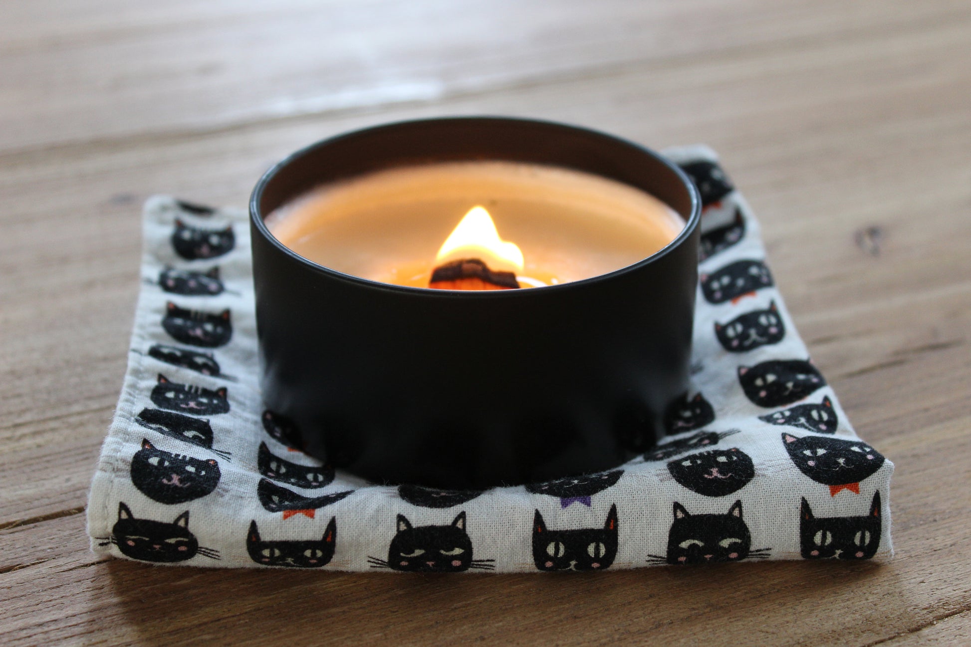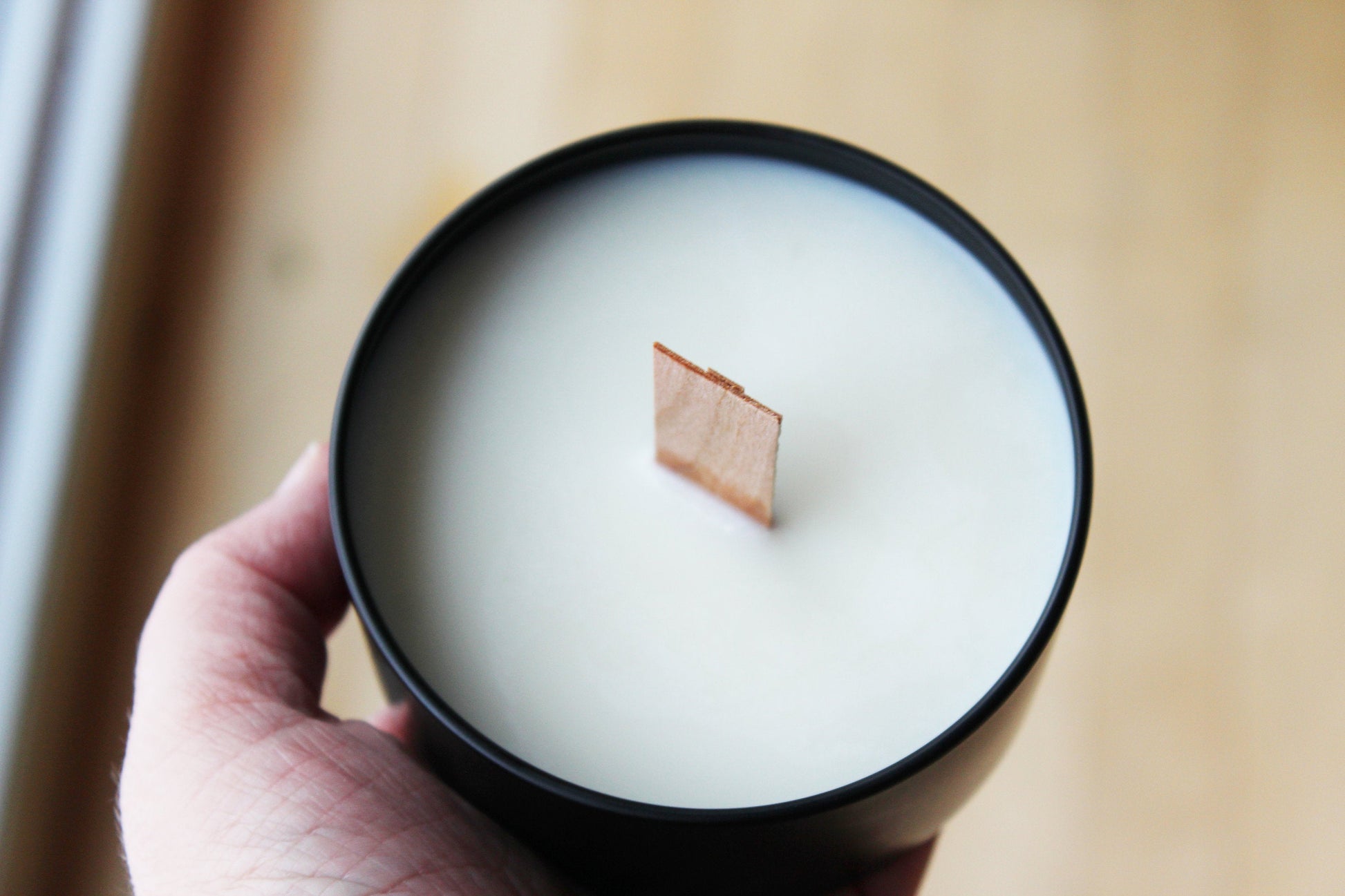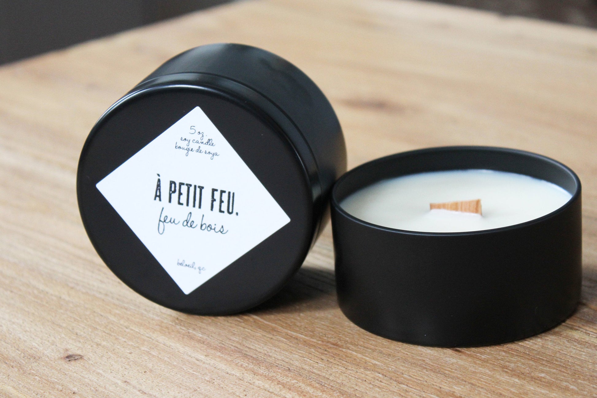 Bougie de soja - zen étain noir - feu de bois L'arôme de sapin chaud, de bois de cerisier et de fumée s'entremêlent pour créer un parfum qui vous rappellera de beaux souvenirs de soirées près d'un feu réconfortant.