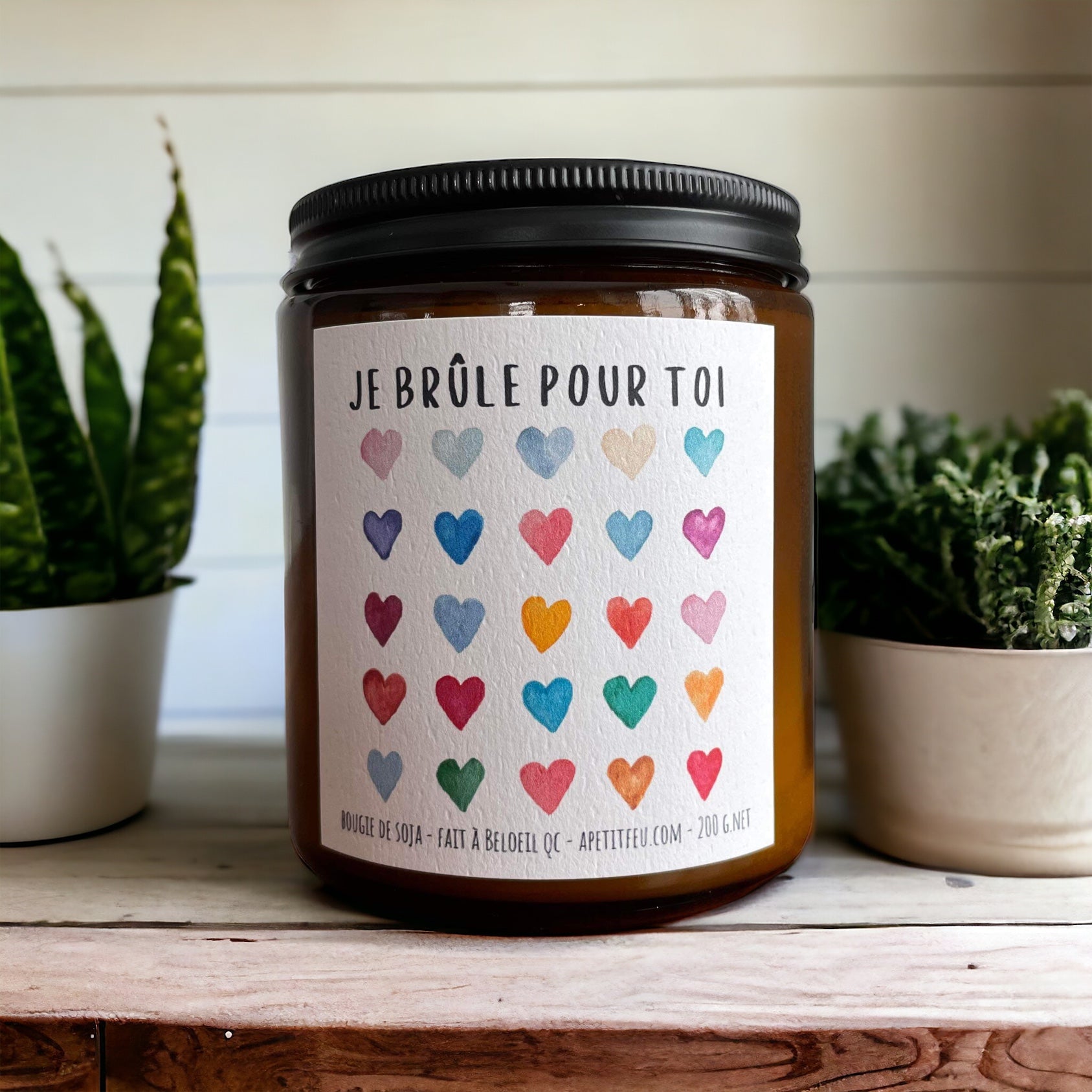 Bougie de soja à offrir à l'être aimé: Je brûle pour toi.