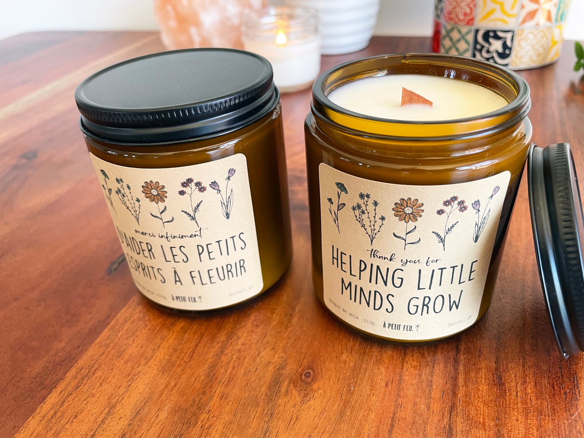 Les bougies sont coulées en petits lots dans mon atelier, à mon domicile situé à Beloeil, QC Canada.