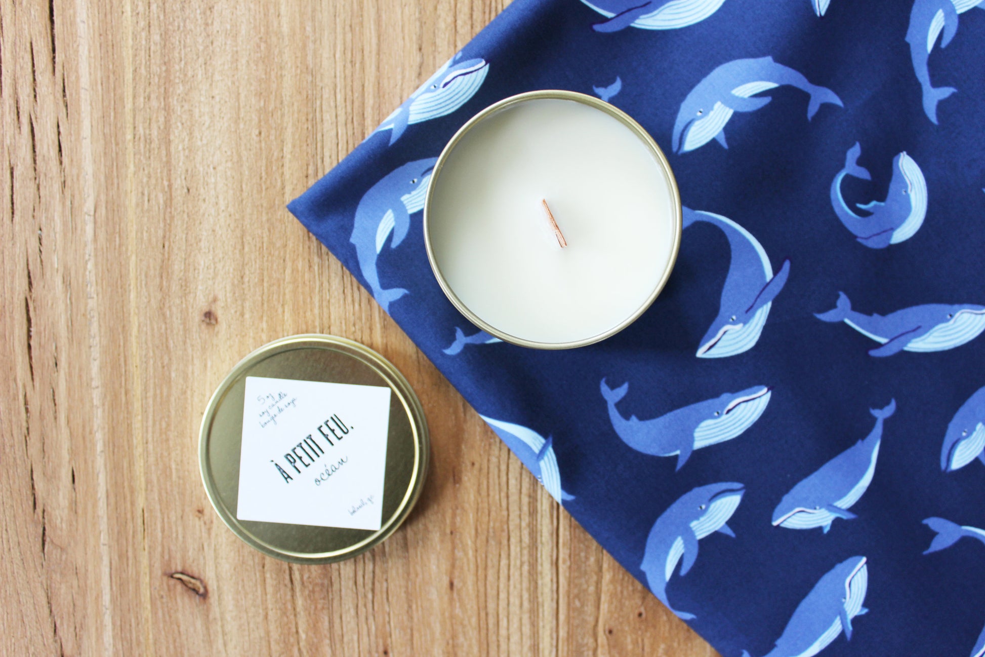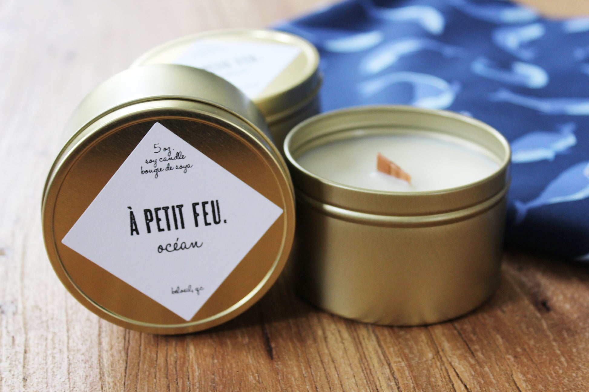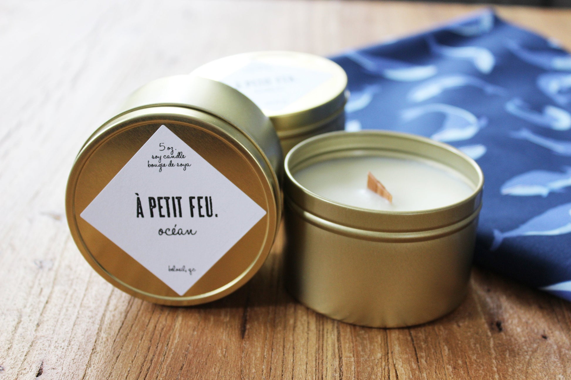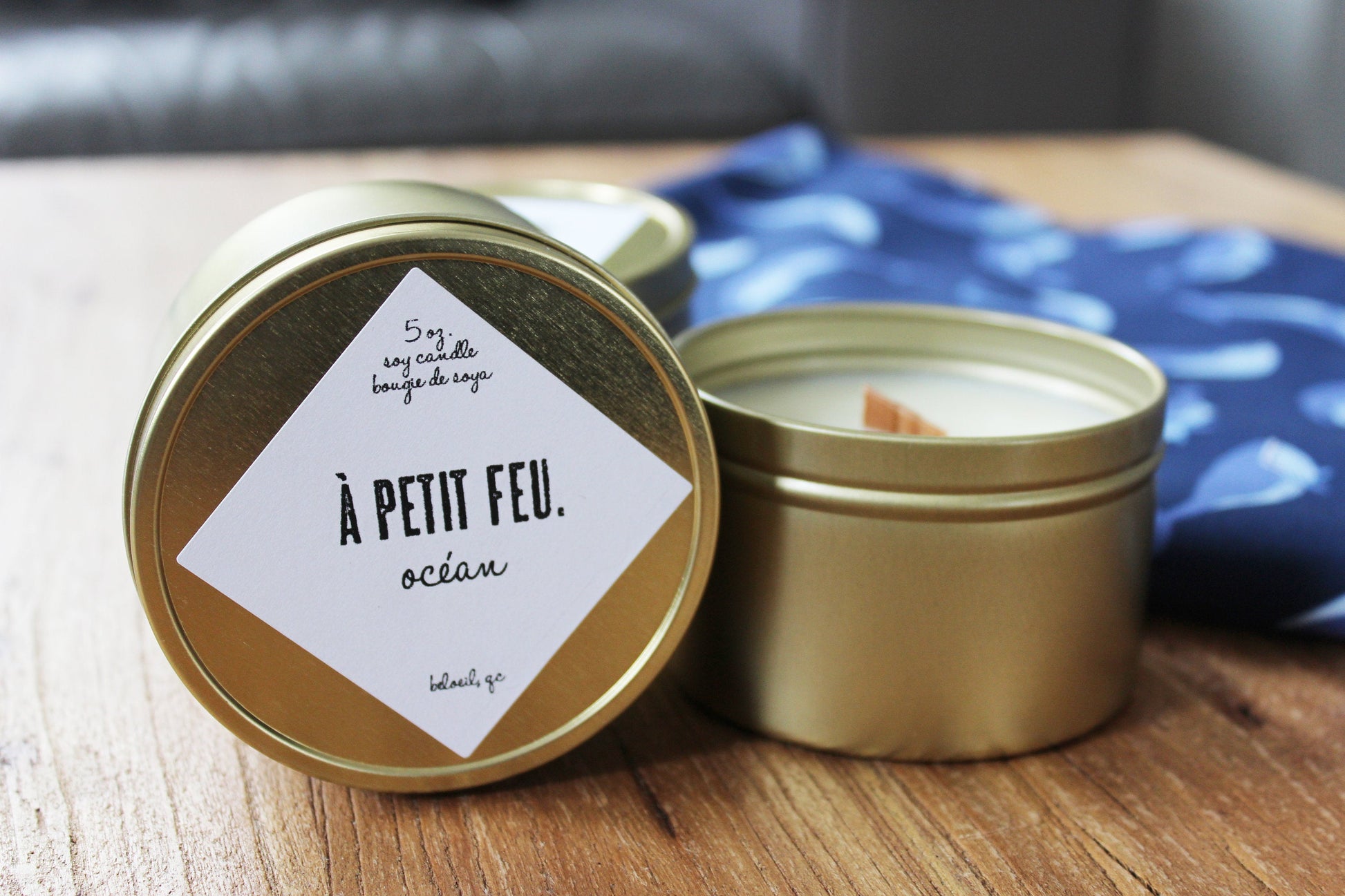 Bougie de soja - zen étain doré - océan Bougie au parfum tropical très délicat. Avec des notes de pulpe de citron, mandarine italienne, nénuphar, eau de mer et bois flotté. Un parfum parfait pour vos moments de relaxation.