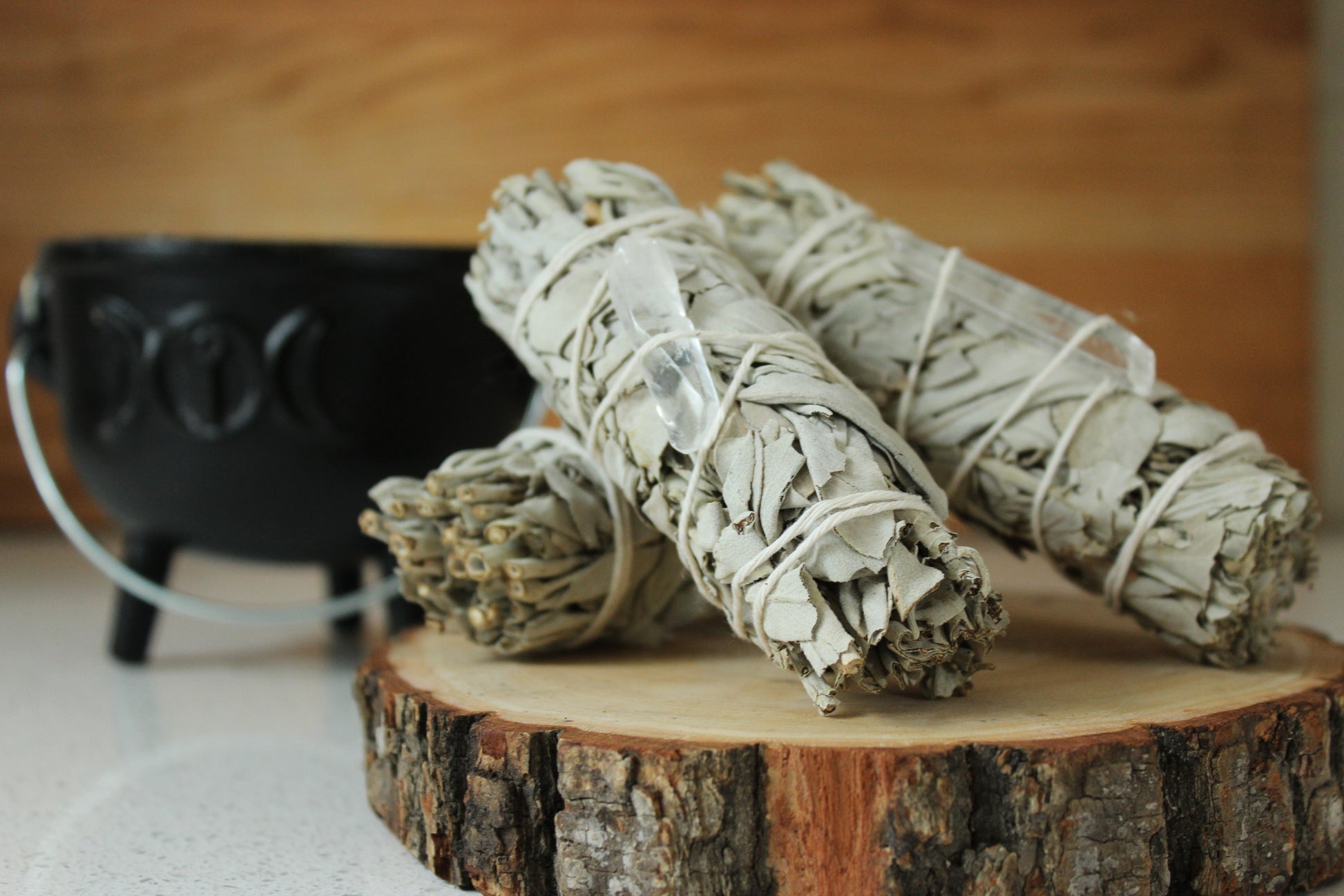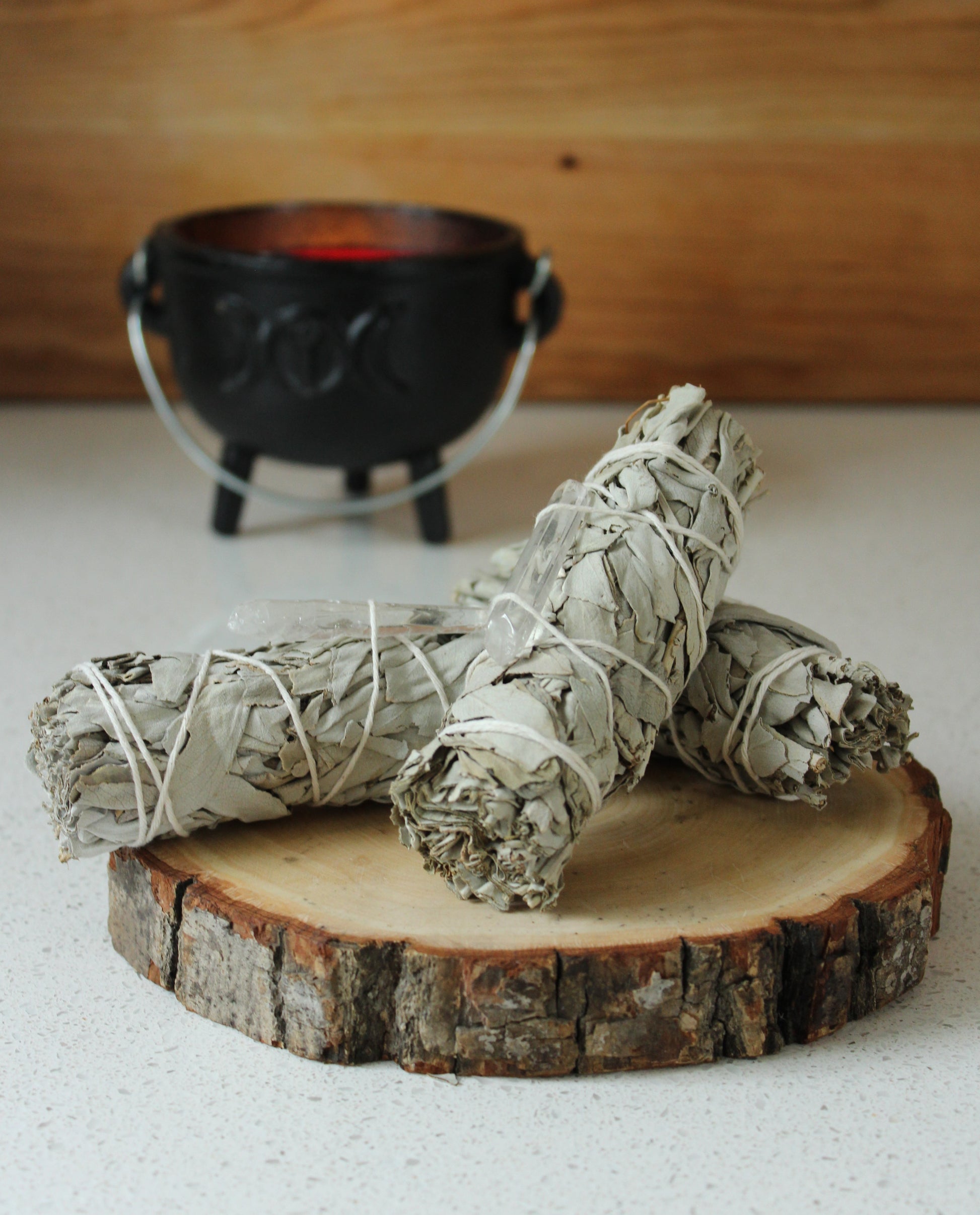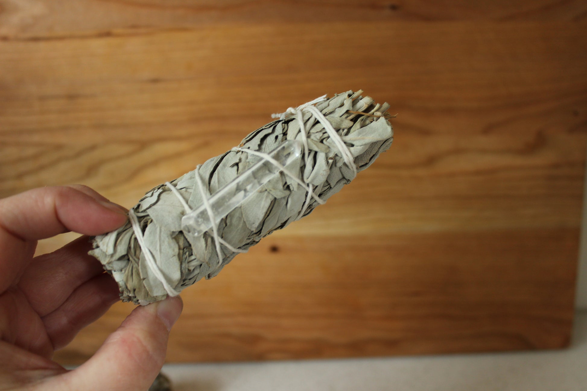 vous obtiendrez un (1) bâton de sauge agrémenté d’une baguette de quartz.