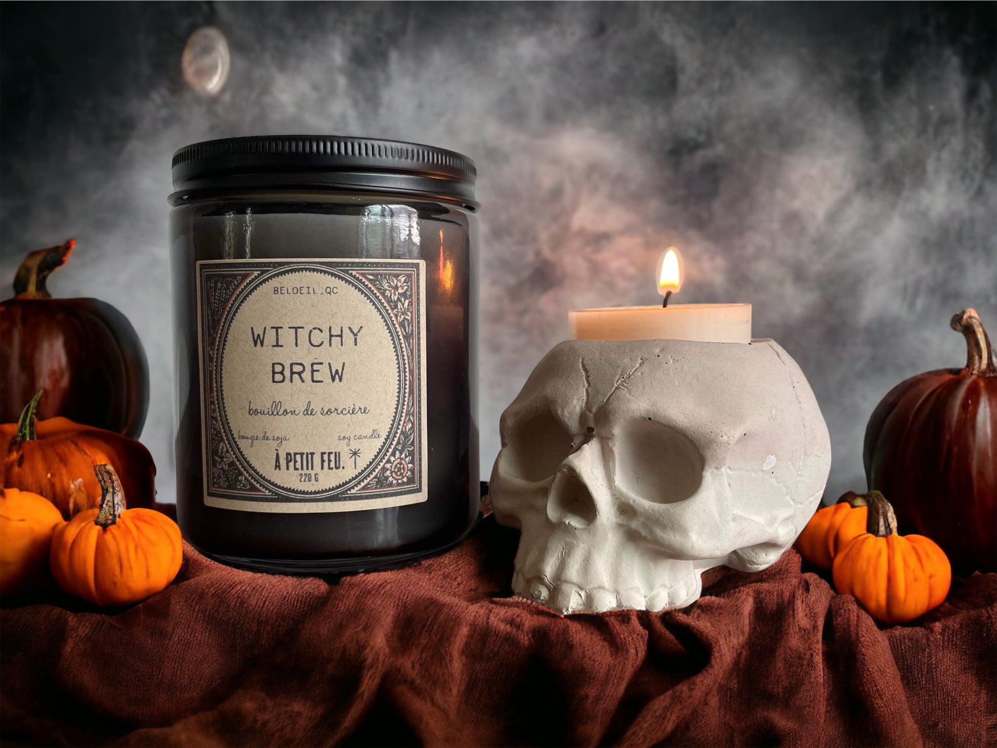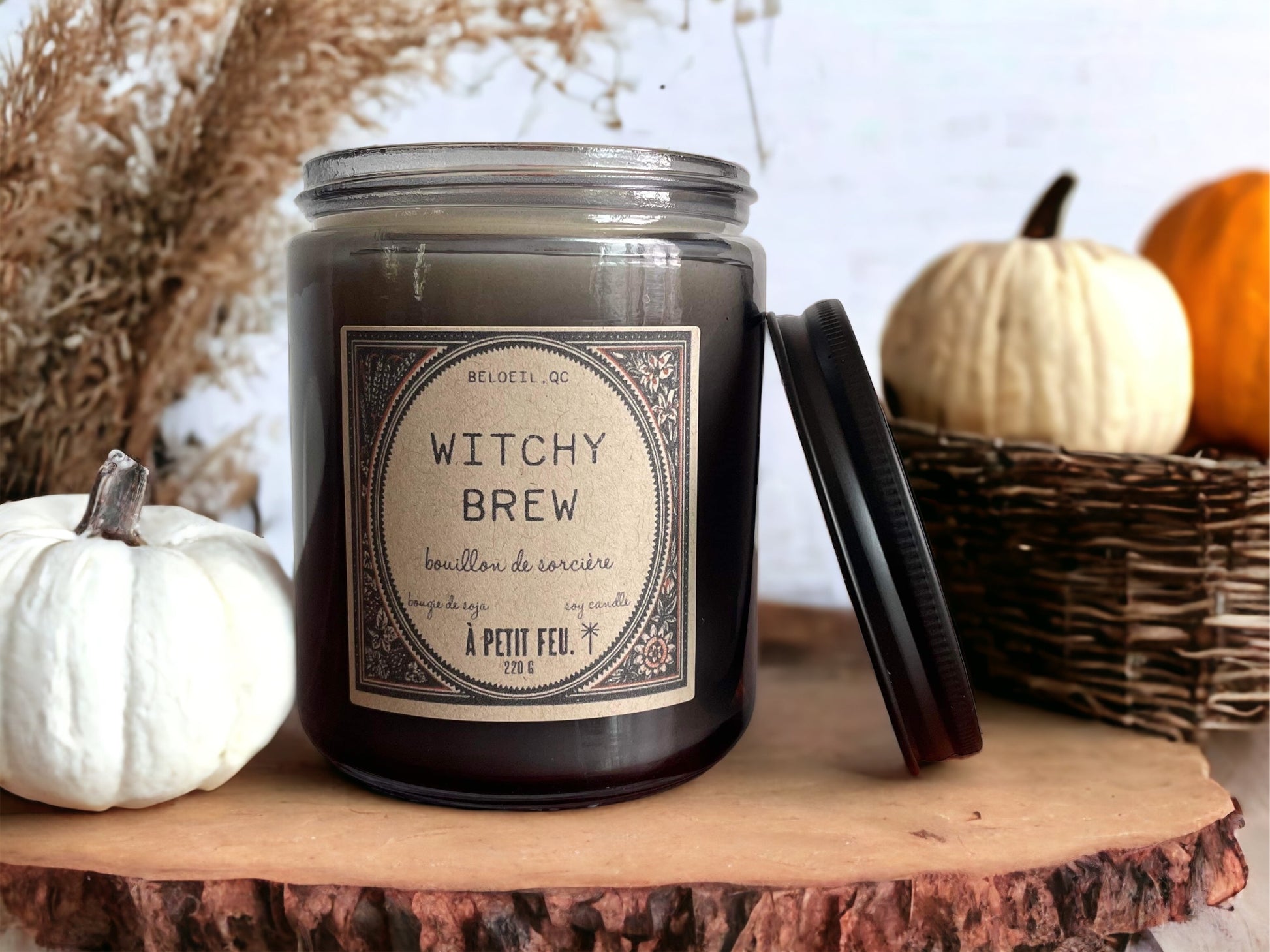 Cette bougie au bouillon de sorcière contient de riches notes de terre qui se mêlent à l’ambre foncé et au bois de guiace exotique pour un parfum envoûtant qui captive les sens.